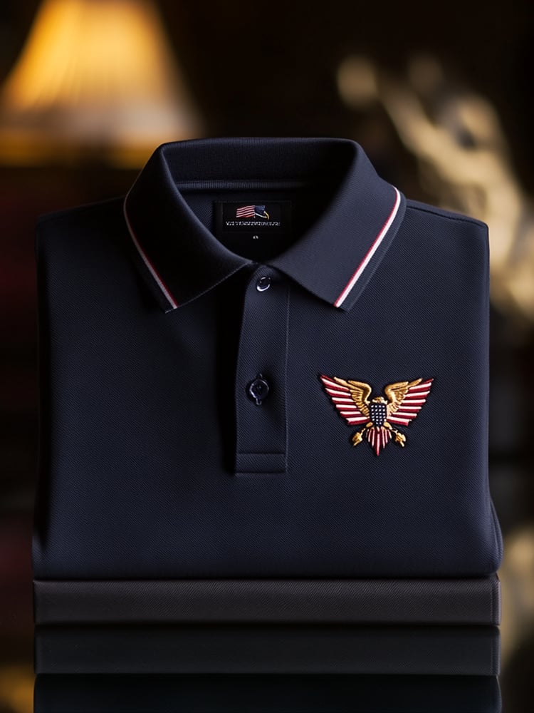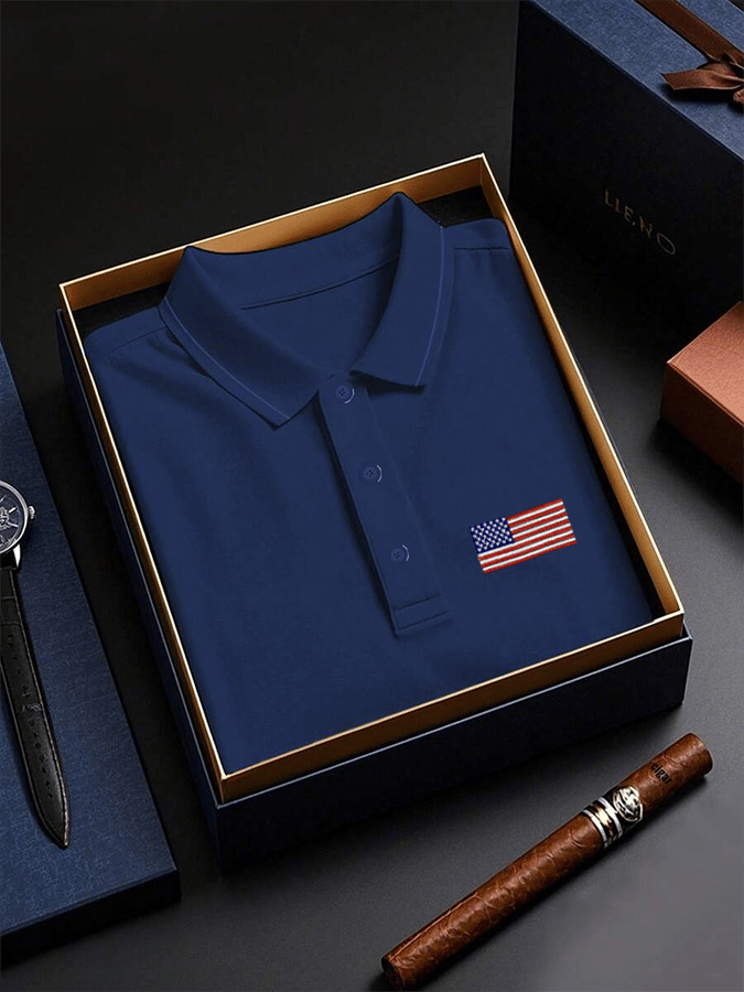 Men's Business Casual Flag Button Short Sleeve Polo Shirt$38.90 USD$71.96 USD