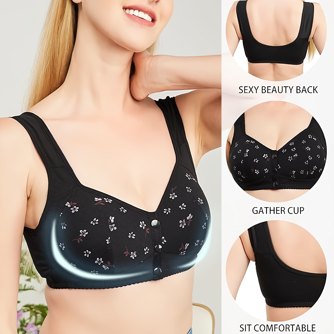 Comfortable Cotton Wireless Daisy Bras with Snap Front Button in a Second!
