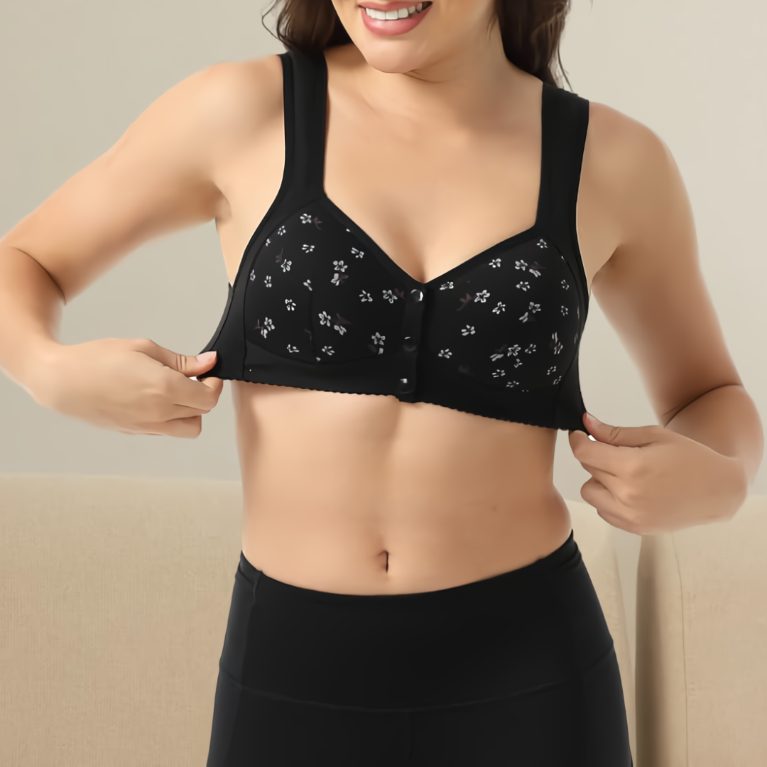 Buckling on your bra shouldn't be that troublesome, the button bra buckles from the front, so you never have to waste time!