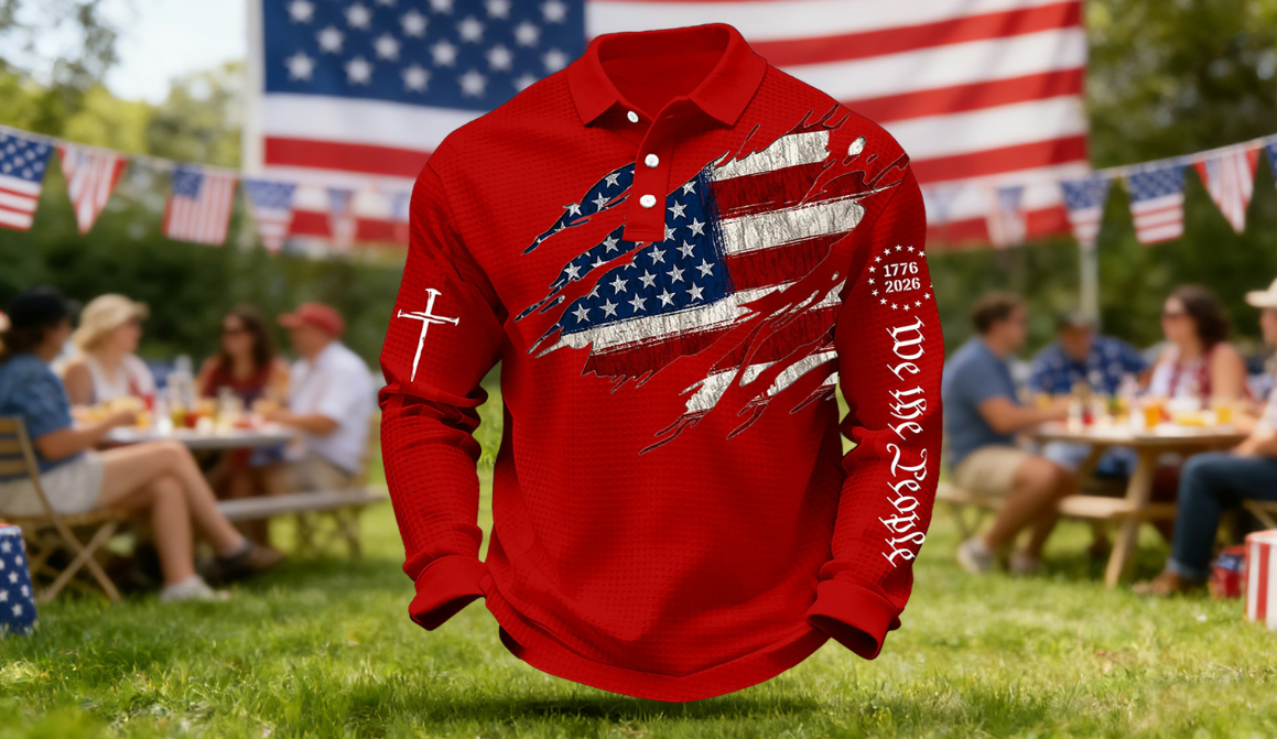 Show your patriotism in comfort and style with our exclusive 250th Anniversary National Flag Print Casual Waffle Fabric Polo Shirt — the perfect blend of spirited design, everyday wearability, and high‑quality comfort.