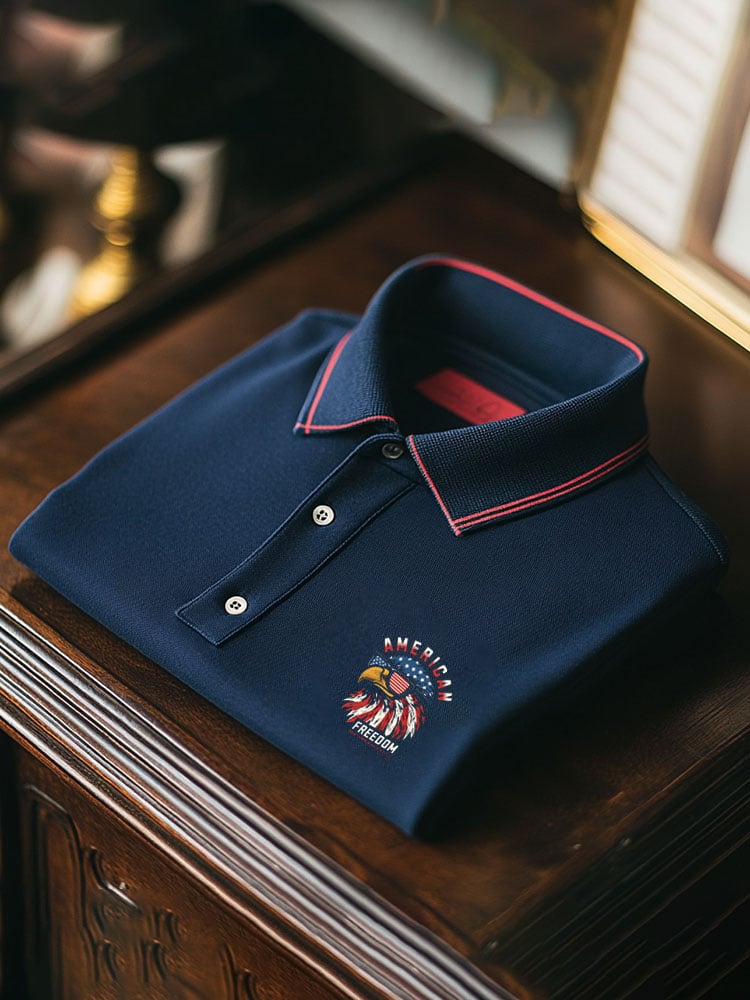 Men's Business Casual Logo Button Short Sleeve Polo Shirt