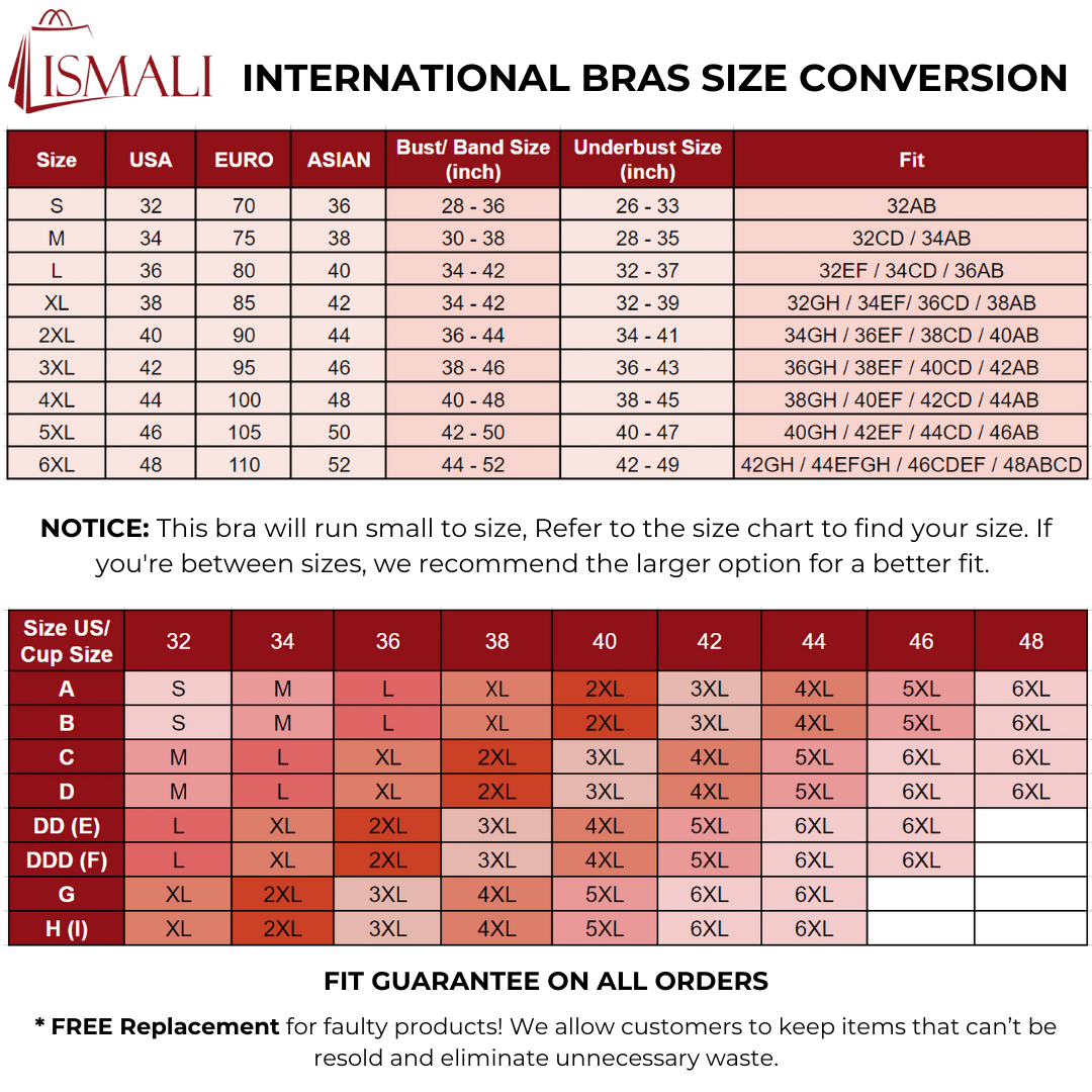 - Size: 32-48/ A-H Cups