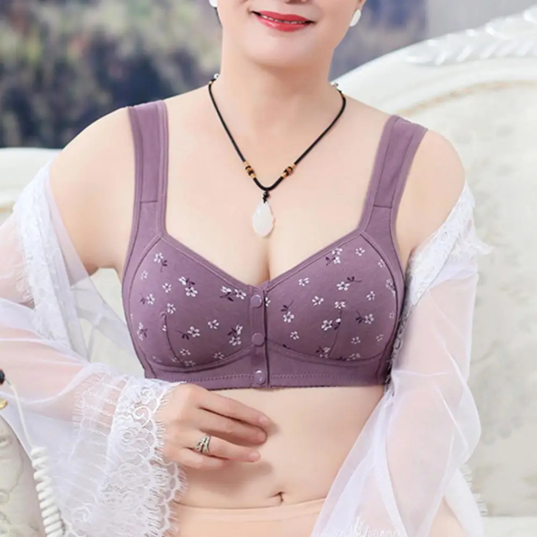 Comfortable Cotton Wireless Daisy Bras with Snap Front Button in a Second!